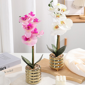 ترتيب الأوركيد الفراشة الصناعية الراقية ديكور غرفة المعيشة الفاخرة مع نبات بوعاء وزهرة اصطناعية خفيفة