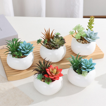Planta verde suculenta de interior en maceta pequeña de gama alta con hierba de flores artificiales de cactus lista para la Oficina para decoración de escritorio