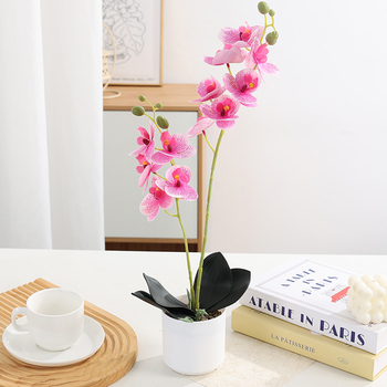 यथार्थवादी paenopsis पॉटेड प्लांट 3 डी चार-सिर नरम रबर ऑर्किड बोनसाई ग्रीन डेस्कटॉप सजावट कृत्रिम