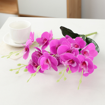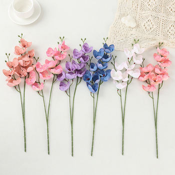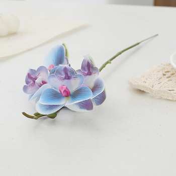 High Realistic 5-Branch Orchid Wedding Home Decor Simulated Hand Feel Over-Glued Artificial Flower Arrangement Accessories